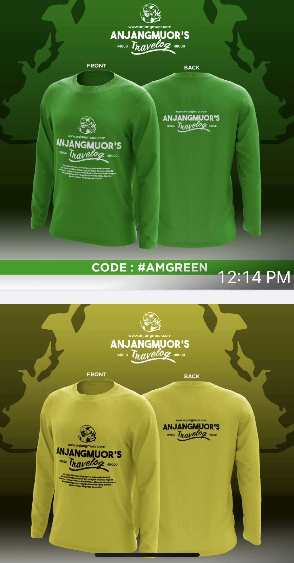 Hari ni anjang nak promosi t-shirt Anjang Muor’s Travelog. Ada lima warna yang menarik. Hijau, Merah, Biru, Hitam dan Kuning. Plain je la. Tak mau yang bercorak sangat. Ada yang berkolar dan ada yang round neck. Untuk pakai biasa-biasa. Untuk buat kerja. Santai di rumah. Jalan-jalan. Nak tidur pun boleh pakai.